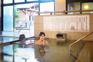本温泉は、令和元年に泉源を得た新しい天然温泉で、当地の歴史由緒に与り「積善温泉」と命名。いつまでも枯れることなく人々の心と身体を癒し続ける泉でありたいとの願いを込めております。