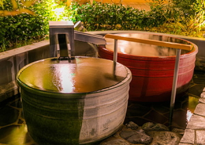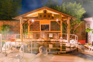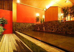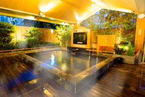 露天エリア:岩風呂、つぼ湯、高濃度炭酸泉、腰掛湯、寝ころび湯、足つぼの小道