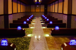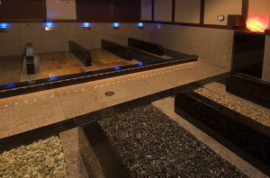 風呂:露天風呂、週替わりつぼ湯 (水素水・炭酸泉)、ゲルマニウム香料風呂、源泉かけ流しつぼ風呂、寝風呂、電気風呂、大浴場、エステ浴、歩行浴、水風呂、高温サウナ、死海どろんこ・ソルトサウナ、岩盤浴