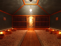 岩盤処:健熱汗房(ロウリュウ)、薬岩太蒸房、美宝汗房、美岩汗房、美塩汗房、健冷寒房(クーリングルーム)、ホットフロア健楽癒房、休憩スペース